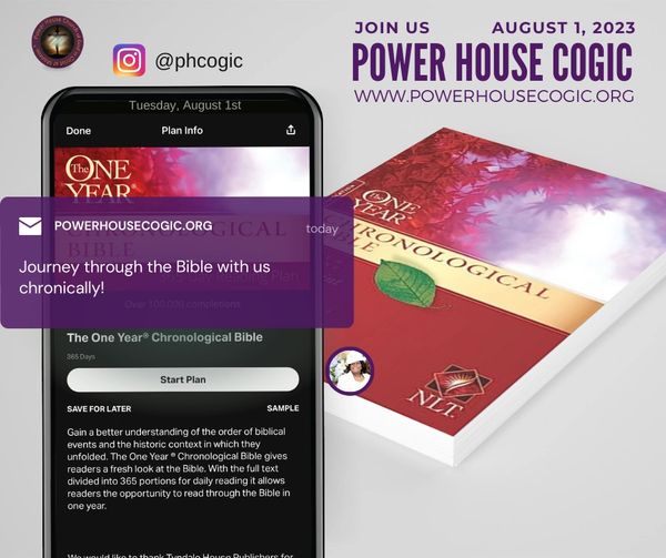 Power House Church of God in Christ of Monroe invites you to embark on a transformative journey through the Bible, reading it chronologically over the course of a year as part of your personal devotion. Our journey begins on January 1, 2025. Join us in deepening your faith and understanding of God’s Word!